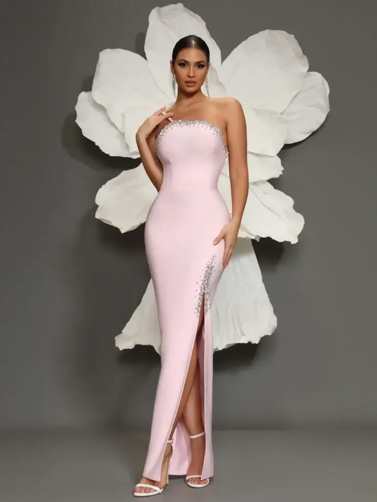 • Baby Pink Strapless Dress – Youthful and Delicate: A baby pink strapless dress conveys freshness and lightness. Lighter and cooler in tone, baby pink creates a youthful aesthetic that feels clean and airy, especially when paired with strapless silhouettes. This shade works best in spring and summer environments, as well as casual or semi-formal events where a relaxed elegance is desired. When styled minimally, baby pink allows the neckline and structure of the dress to take visual priority.